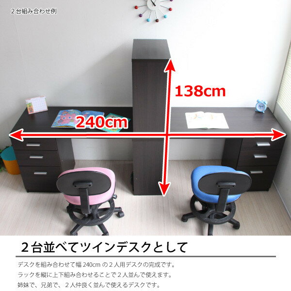 送料無料 学習机 ツインデスク コンパクト システムデスク リビングデスク 勉強机 勉強デスク 木製 ブラウン シンプル 子供 大人 収納デスク 収納棚 本棚 書斎机 パソコンデスク キッズデスク PCデスク パソコン机