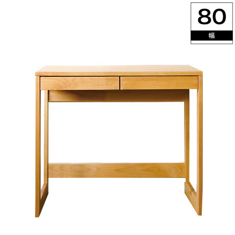 デスク 木製 天然木アルダー無垢材 幅80cm スライドレール 引き出し2個付き ナチュラル デスク パソコンデスク ママデスク 学習机 書斎デスク